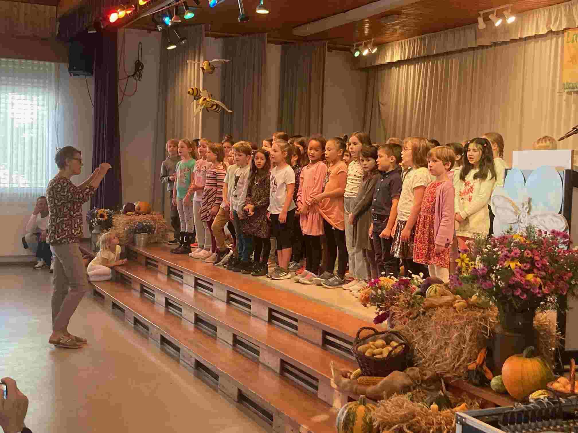 Im Rahmen des Kartoffelprojekts haben Kinder der 3. Klassen unter Anleitung unserer Musiklehrerin beim Kartoffelfest der Landfrauen gesungen.